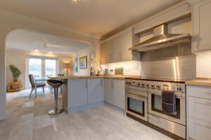 The property is entered via an inviting entrance hall leading to an open plan kitchen/dining room, complemented by a separate utility room, cloakroom and a cosy double aspect sitting room with an open fireplace.A ground floor shower room adds further practicality and flexibility to the layout. French doors lead out from both the sitting room and dining area with fine views over the gardens and countryside beyond.